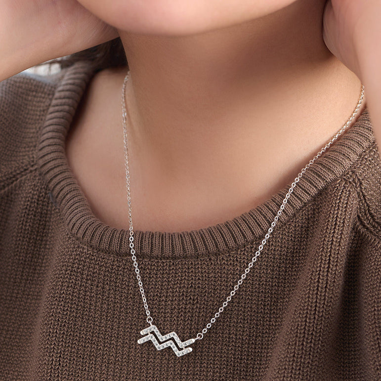 WRITTEN IN THE STARS: The perfect way to express the personality as an Aquarius — independent, clever, and optimistic is through wearing of this Aquarius zodiac sign necklace. Be yourself and show off your unique and fun personality with this silver Aquarius constellation astrological sign.