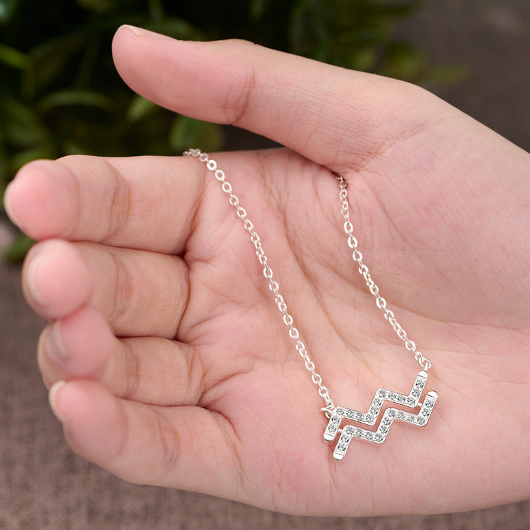 INTRICATE CRAFTSMANSHIP: Made with 925 sterling silver, our constellation necklace features an iconic Aquarius zodiac symbol studded in brilliant cubic zirconia, makes you stand out with this Aquarius constellation stars. This silver Aquarius zodiac necklace is available in 18” to 20” chain length.