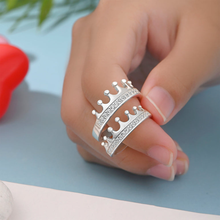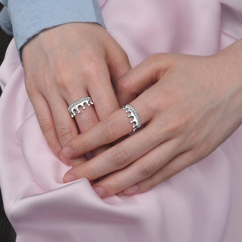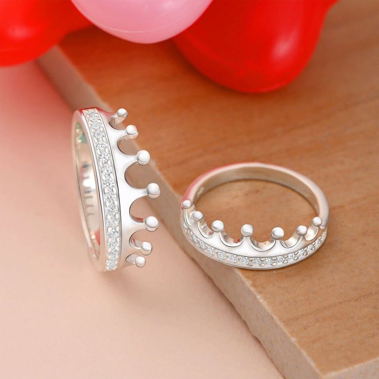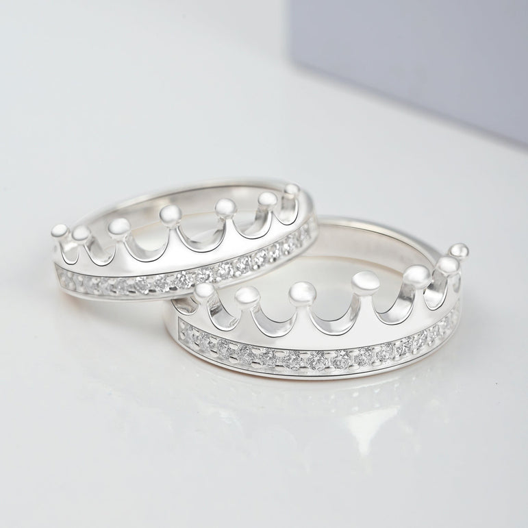 A ROYAL MAKEOVER: Give you and your significant other a royal makeover with these luxurious matching couples rings. Our cubic zirconia promise rings in crown design hopes to remind you and your loved one that you both are the king and queen in each other's life.