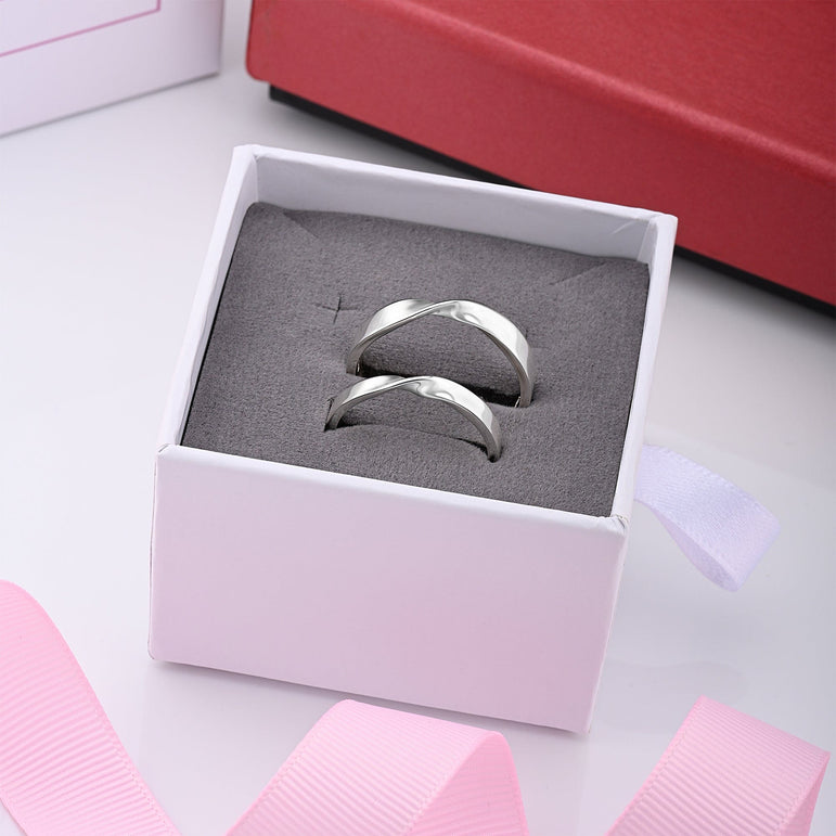 A PERFECT MATCH: Simplistic in design and sentimental in meaning, this minimalist yet sleek Twisted Romance Sterling Silver Couples Rings Set embodies the message and promises that symbolize everlasting love for a lifetime.