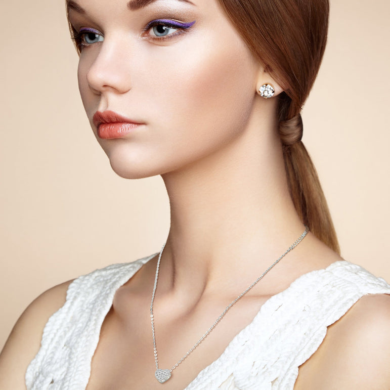 Designed and crafted with 925 sterling silver and AAA cubic zirconia, the glistening girls heart necklace is classy and edgy with romance. The heart silver pendant size is 0.45 inch x 0.40 inch, sliding along 18-20 inch silver chain secured with lobster clasp.