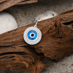 Turkish Blue Evil Eye Pendant Sterling Silver
